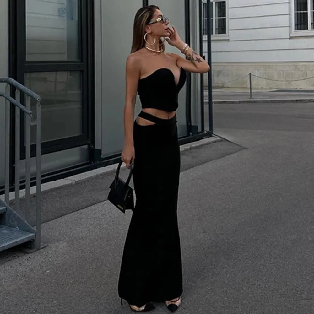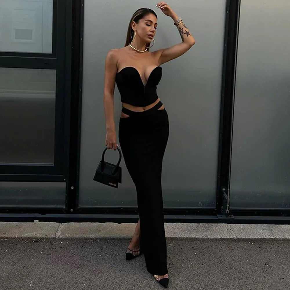 Bandage Matching Two Piece Set Sexy Top & Long Skirt Sets Women's Elegant Celebrity Party Evening Runway Vestidos New