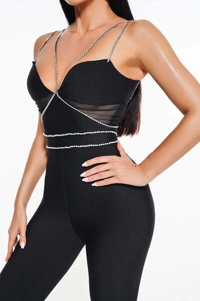 Sexy Women's Summer Bandage Jumpsuit Fashion Spaghetti Strap Sleeveless Diamond Design Tight Evening Party Pencil Jumpsuit