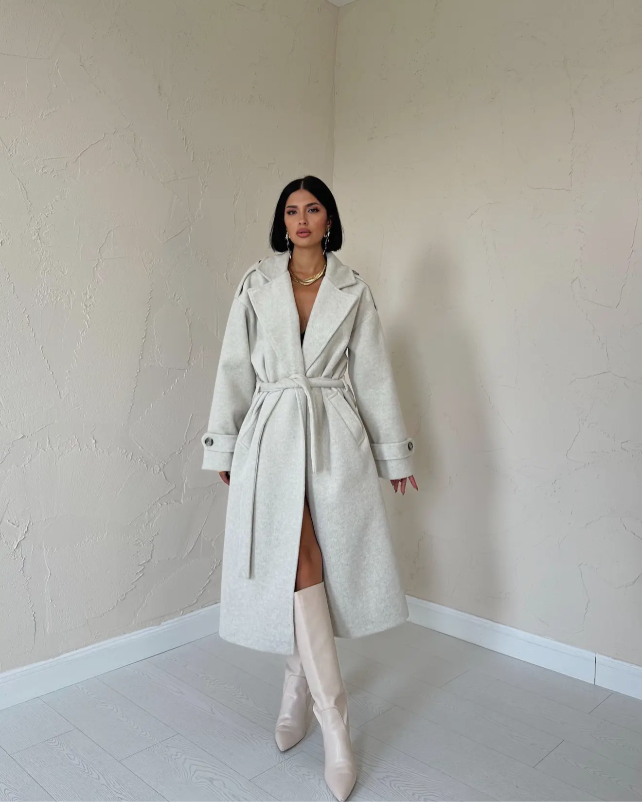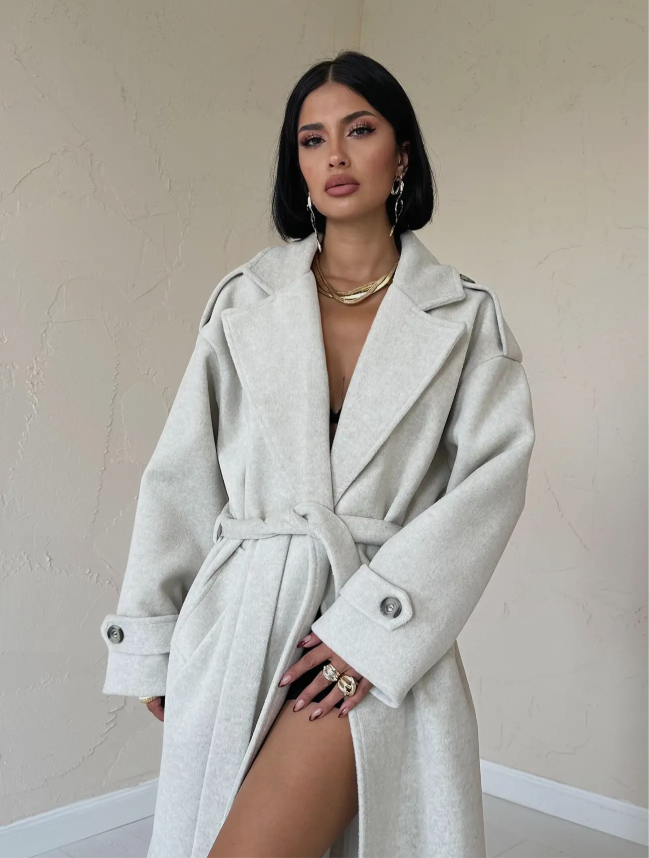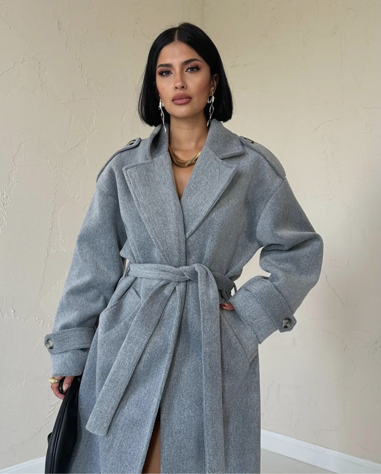 This long coat features a flap collar, two side pockets, and a belt at the waist for a stylish look. With its inner lining, it will keep you warm while being trendy. Perfect for fall and winter, add it to your collection now!
